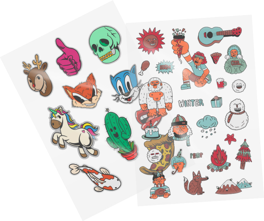 УФ дтф Стикерпаки Яркие на клейки на пленке с клеевой основой и монтажной пленкой для переноса Заказать